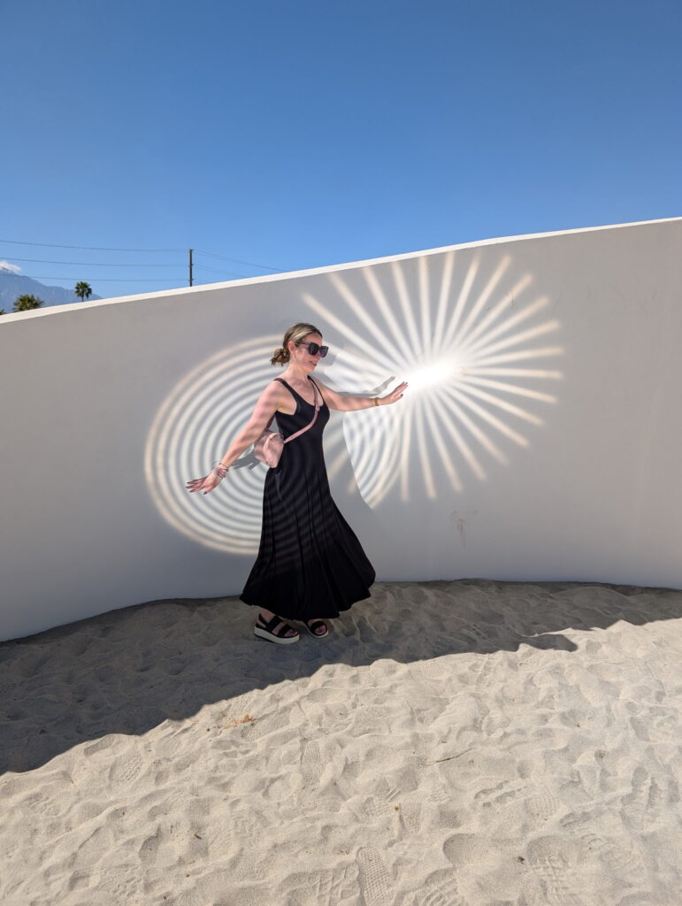 Another fun aspect of this year’s event was getting the chance to check out a few of the Desert X installations. One of my Alt besties, Morgan First, organized an informal art adventure/roadtrip where several of us headed out to a few sites in the greater Palm Springs area to check out the artwork, like the mirror/reflection piece by Sarah Mehoyas shown below.