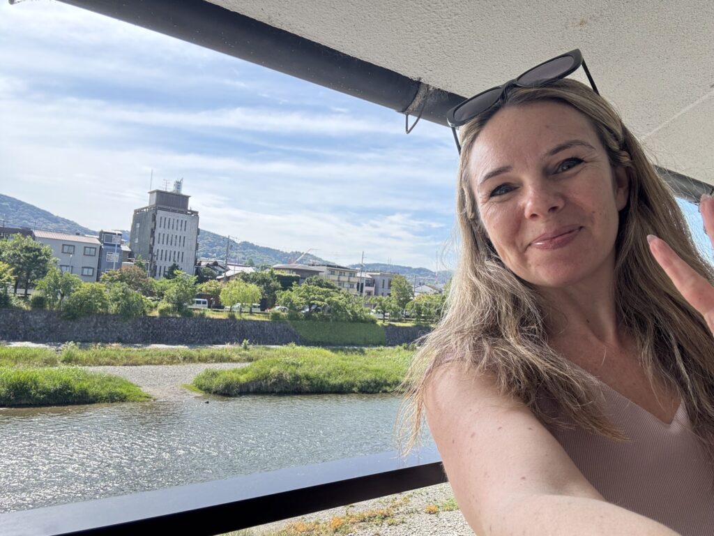 Watching the Kamo River float past—with its egrets poking around, mama ducks with their ducklings drifting behind them, and sparkling sunshine lighting up the water—is something I never get tired of. So I intentionally booked an Airbnb that had a terrace overlooking the river and spent as much time as I possibly could on it.